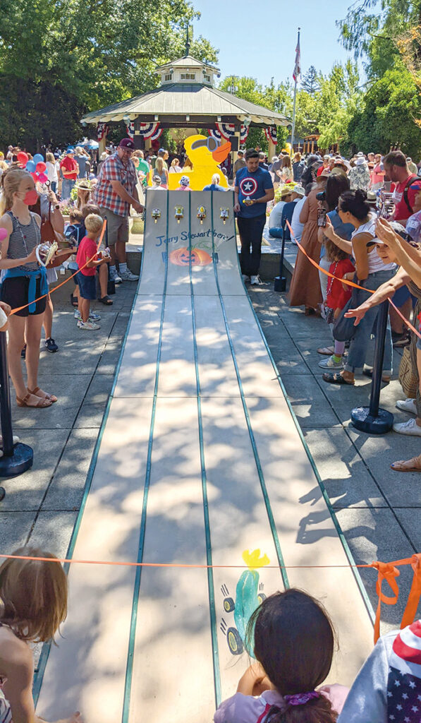 The Duck Dash—a highly-competitive float of rubber duckies down a water course—is held around noon. Family activities continue until 1pm, including live music and many kid-friendly activities, such as lawn games, veggie races (why should zucchini have all the fun?), face painting and a demonstration of the art and science of bubbles from “bubblesmith” Sterling Jonson.