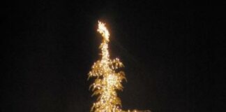 Town square fills with lights