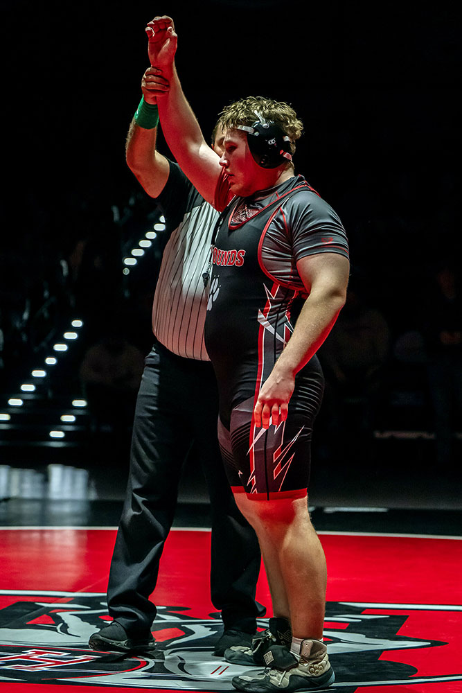 The Hounds efforts were led by Eli Zepeda who won at 287 pounds. Although Willits moved up their 217-pound wrestler (currently ranked sixth in the NCS) to try and gain an advantage, Zepeda prevailed in a physical and hard-fought match, winning by a score of 7-4.
