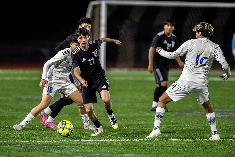 Photos by Michael Lucid SUCCESS Healdsburg’s Sergio Vasquez (11) breaks through the Cloverdale defense in Healdsburg’s 6-0 win on Jan. 8, 2026.