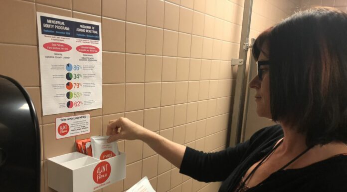 Mequity at the library, making free and equal access to menstrual supplies “a norm”