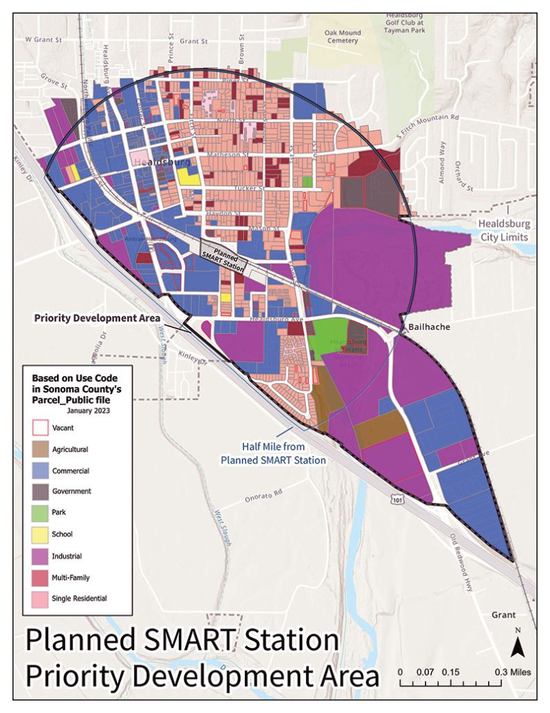 The City of Healdsburg has begun planning for the eventual arrival of SMART, perhaps as soon as the end of 2028. The planning began at Monday’s City Council meeting, when the five-member board heard from Planning Director Scott Duiven about the formation of a Healdsburg Station Area Specific Plan and the formation of two Community Advisory Committees to contribute to the process.