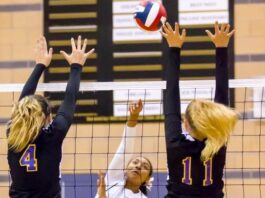 Tiger volleyballers turn back Lions in three sets