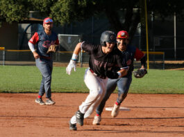 Healdsburg’s narrow path to an NBL Redwood baseball pennant opened a bit wider Wednesday afternoon. In dramatic fashion, the Greyhounds broke a 7-inning scoreless game on a two-out error by the Montgomery shortstop that allowed Tyler Swanson to score from second in the top of the eight inning.