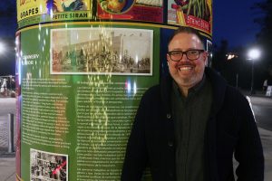 Almost lost in the evening was the unveiling of a new work of public art—an 880-gallon wine tank, labeled across its circumference with the history of agriculture in Healdsburg. These were some of the same historical photos and details that had decorated the scrims surrounding the construction zone for almost two years, now converted to a single circular mural of art linking Healdsburg’s roots to its new roof.