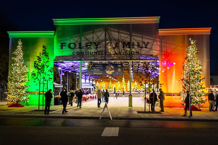 The doors were thrown open and the holiday lights turned on as the city held an Open House at the new Foley Family Community Pavilion on Monday, Dec. 15, with hot chocolate and cookies and pretzels and speeches. There were plenty of congratulations to go around, and go around they did—even though the Pavilion is not expected to host its first event until March 2026.